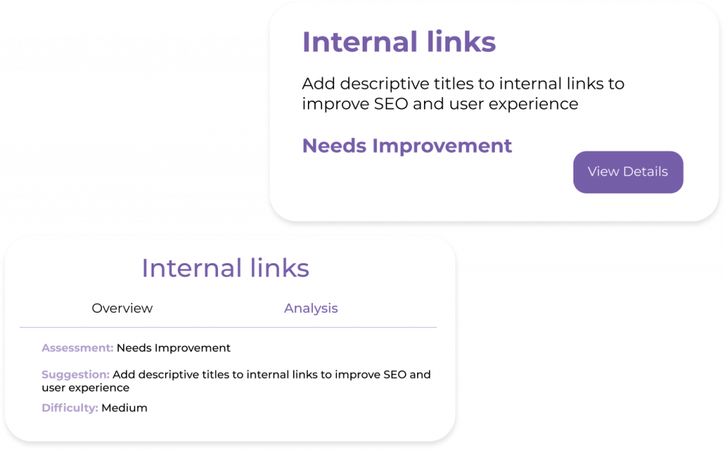 These smart suggestions help you boost your search rankings, improve user experience, and increase organic traffic.
